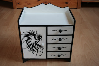 Schubladenschränkchen Feuervogel - mit Acrylfarbe frei Hand bemalt!