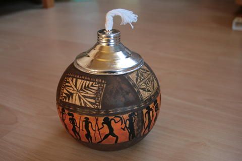 Wunderschöne Afrika Kugelfackel - Motiv Krieger und afrikanische Ornamente...es handelt sich um ein Unikat!