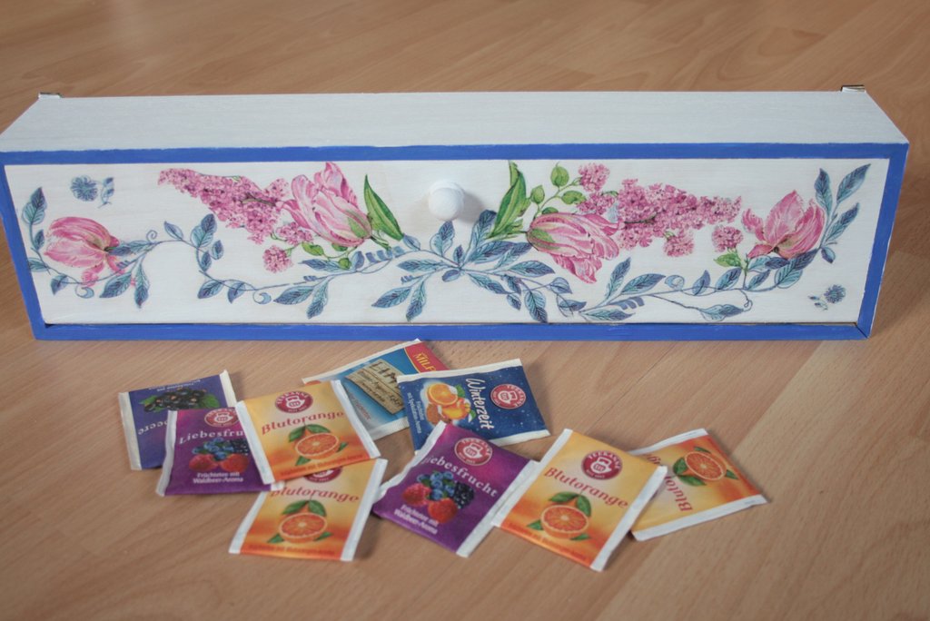 auch die Teebeutelbox hat ein wunderschönes Blumen Frühlingsmotiv!