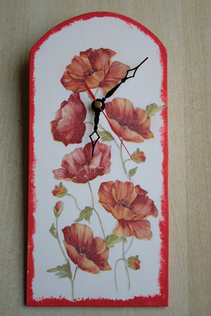 wunderschön ländlich romantische Wanduhr Mohnblumen